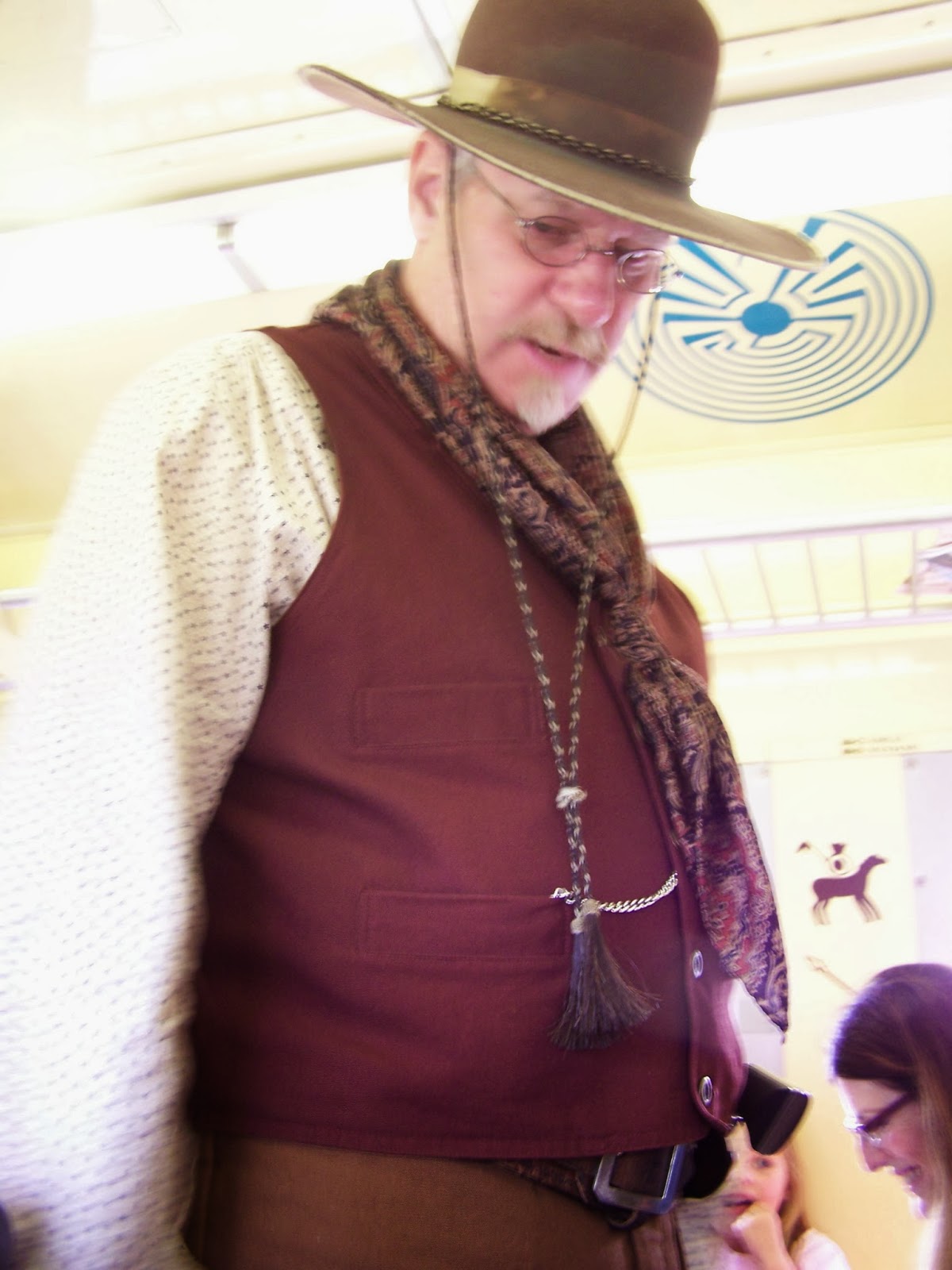 Before we got on the train there was this "play" with cowboys and robbers. while on the way to the canyon, the robbers got on the train and robbed everyone! Bridget and Kaitlyn were a little nervous to give the robber their change! (tips)